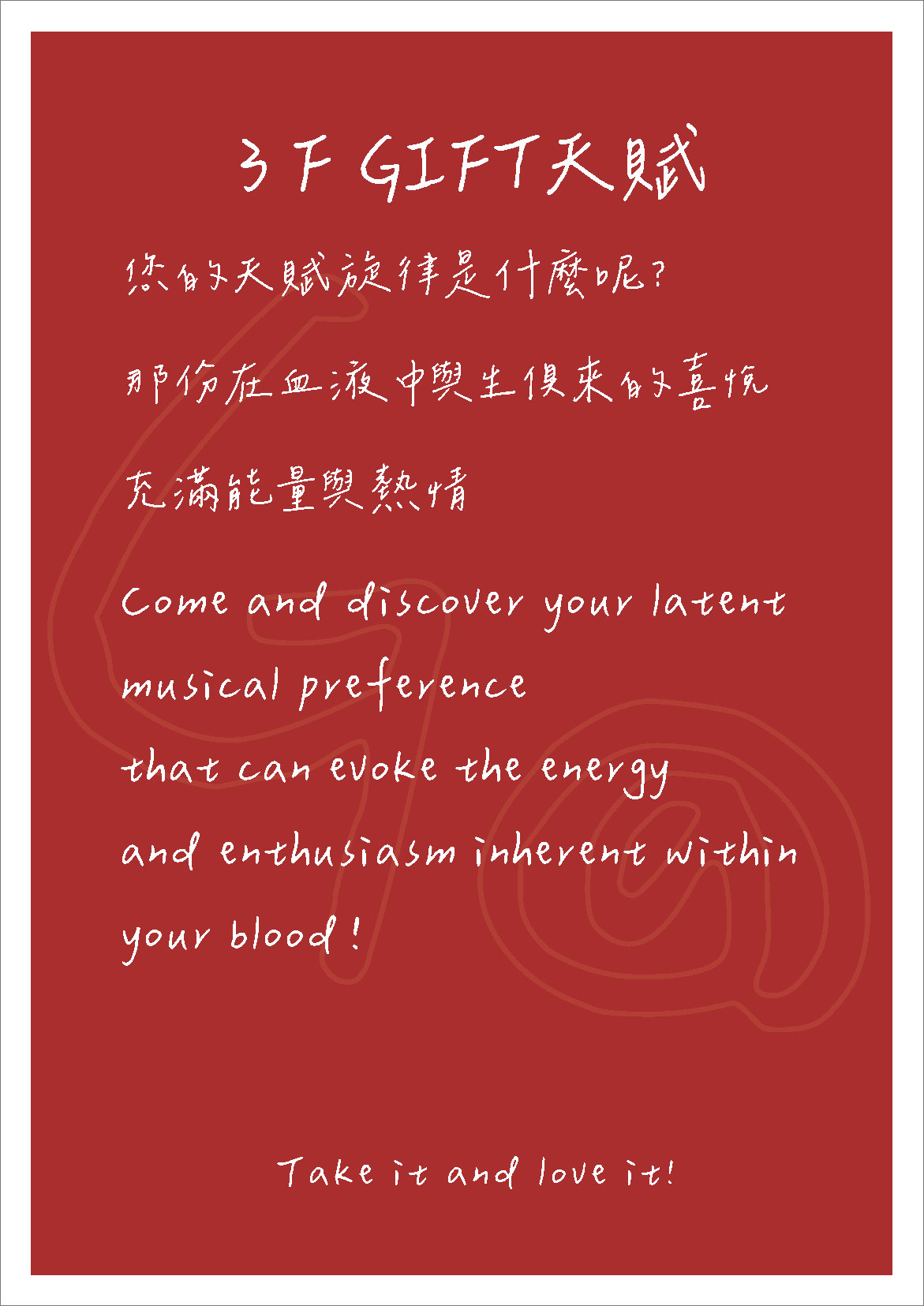 您的天賦旋律是什麼呢? 那份在血液中與生俱來的喜悅,充滿能量與熱情! Take it and love it!